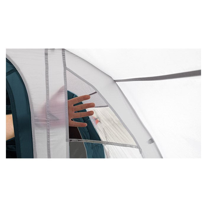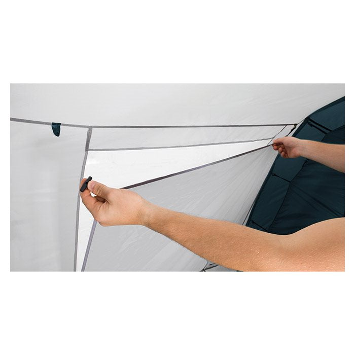 Ingen ønsker at starte ferien med en kompliceret teltopsætning. Derfor er glasfiberstængerne på Palmdale 400 farvekodede, så I nemt og hurtigt kan se, hvad der hører sammen. På cirka 15 minutter kan I have teltet rejst og klar til indflytning. Den dybe baldakin over fordøren giver et fantastisk overdækket område. Her kan I lave mad i læ for regnen, opbevare cykler eller bare sidde og nyde udsigten med en kop kaffe. De store panoramavinduer i opholdsrummet lukker masser af dagslys ind og kan dækkes til med de indbyggede gardiner om aftenen. Gør familiens næste campingtur til en succes og køb jeres Palmdale 400 i dag.Komfort i Alt Slags Vejr