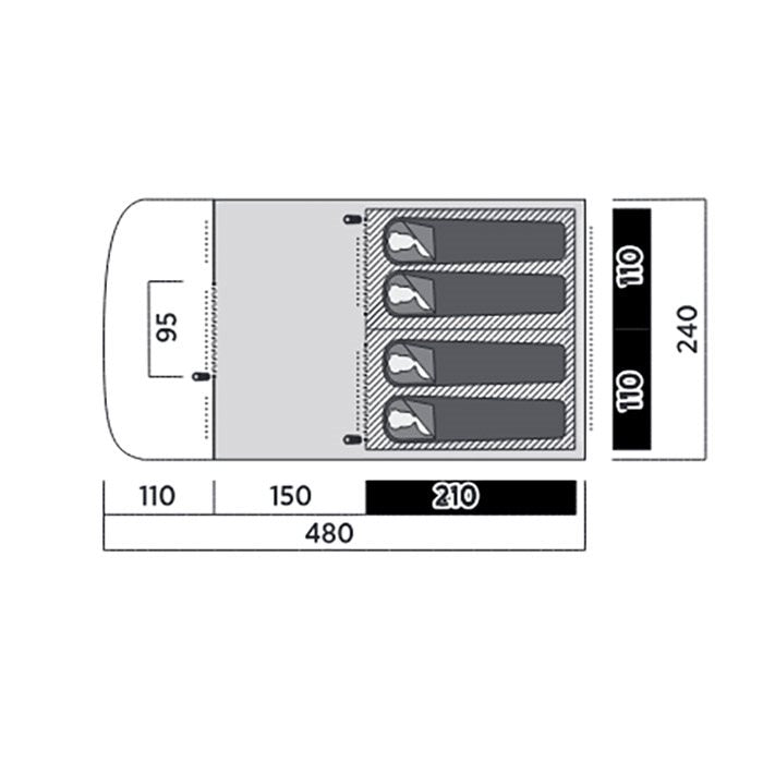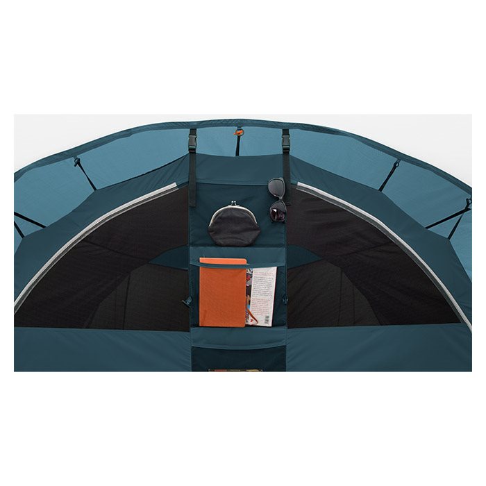 Er teltet svært at slå op? Nej, slet ikke. Takket være de farvekodede EnduraFlex glasfiberstænger og de logiske kanaler er opsætningen enkel og tager kun omkring 15 minutter. Holder det tæt i regnvejr? Absolut. Oversejlet er 100% vandtæt med et vandsøjletryk på 3000 mm og fuldt tapede sømme, så I er garanteret en tør ferie. Er der plads nok til en familie på fire? Ja. Med to adskilte soverum og et stort centralt opholdsrum med ståhøjde er der rigeligt med plads til at både sove, leve og opbevare jeres ting. Hvordan er søvnkvaliteten? Fremragende. De specielle SleepTight sovekabiner er mørklagte for at reducere lysindfald, så I kan nyde en dybere og længere søvn.