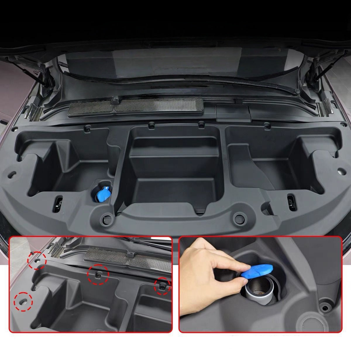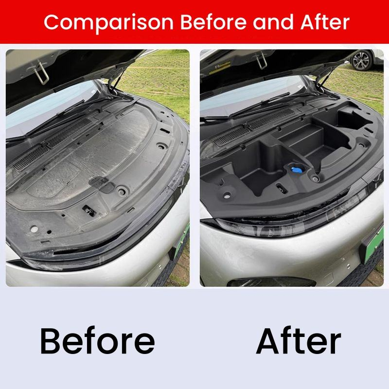 Udnyt pladsen under fronthjelmen på din XPeng G6 og få et ekstra, ryddeligt opbevaringsrum. Denne skræddersyede frunk-indsats giver dig et sikkert sted til ladekabler, adaptere og småting, så bagagerummet kan holdes frit og overskueligt.