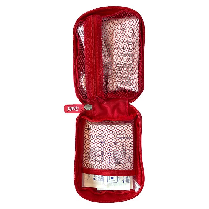 Denne taske er sammensat til at klare de små og mest almindelige skader som snitsår, hudafskrabninger og splinter. Ved alvorlige uheld skal du altid ringe 112. Tasken kan dog være en uvurderlig hjælp til at yde førstehjælp, indtil professionel assistance når frem.