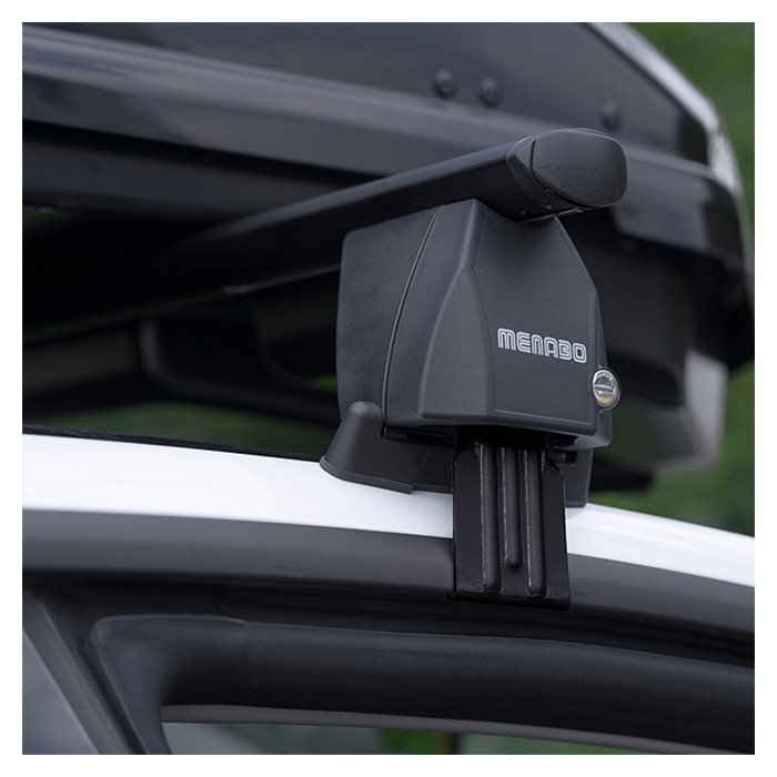 Komplet tagbøjlesæt med aluminiumsprofil fra Menabo i sort. Tagbøjlerne passer til Tesla Model Y 2020-